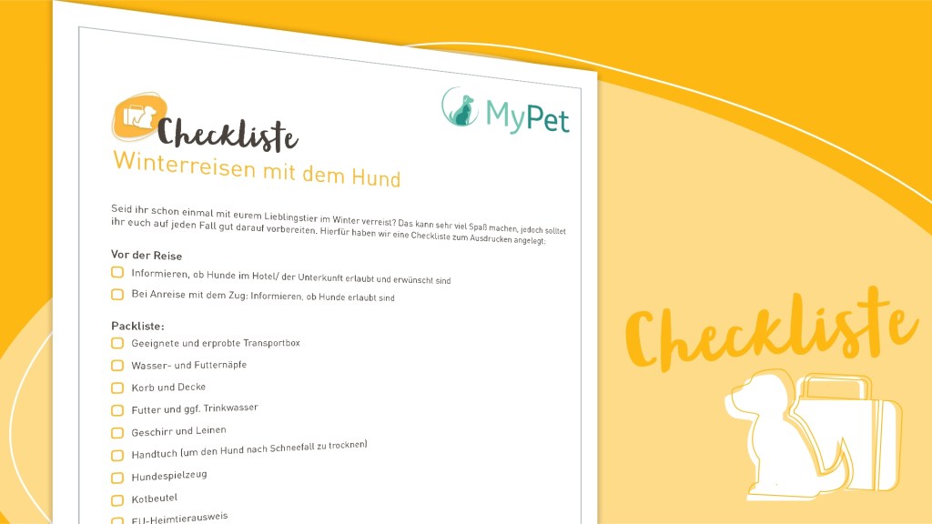 Inhalt: Eine Checkliste zum Ausdrucken für eine Winterreise mit dem Hund